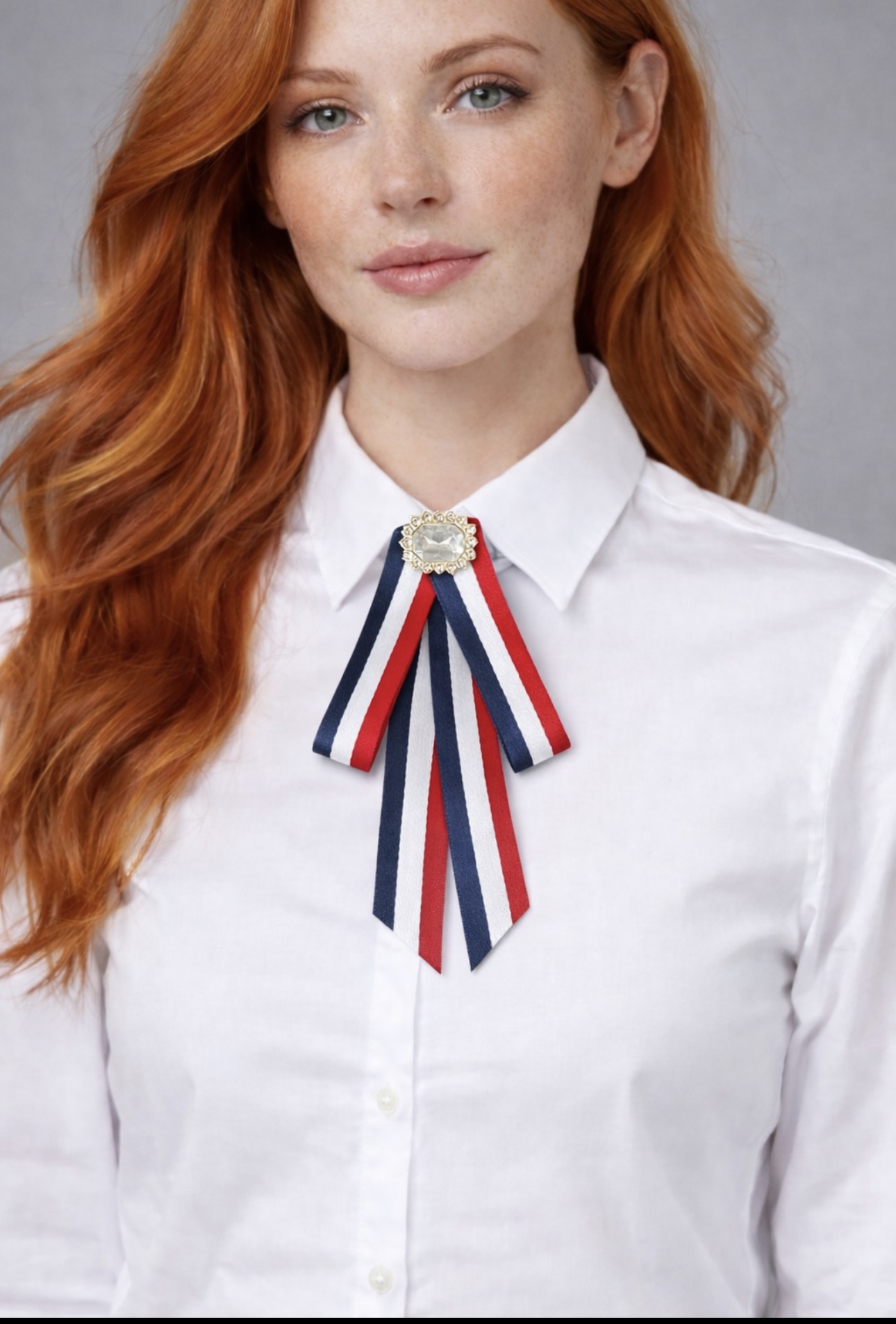 przy kołnierzu koszuli zamiast naszyjnika