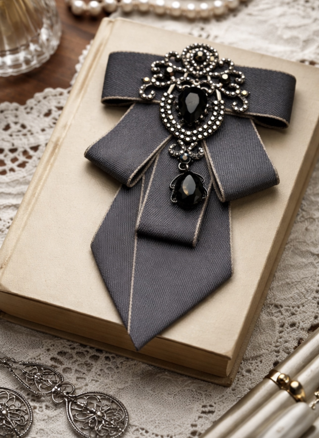 Połączenie krawata i broszki w jednym dodatku