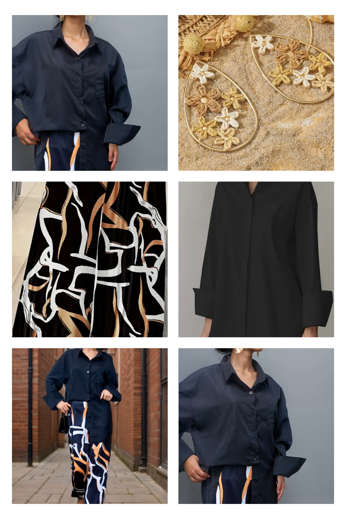 - Czarna, długa klasyczna koszula – minimalistyczna, szykowna i bardzo uniwersalna. Długie mankiety dodają jej elegancji i wyrafinowania. Można ją nosić zarówno luźno, jak i wpuszczoną w spodnie dla bardziej strukturalnego efektu.