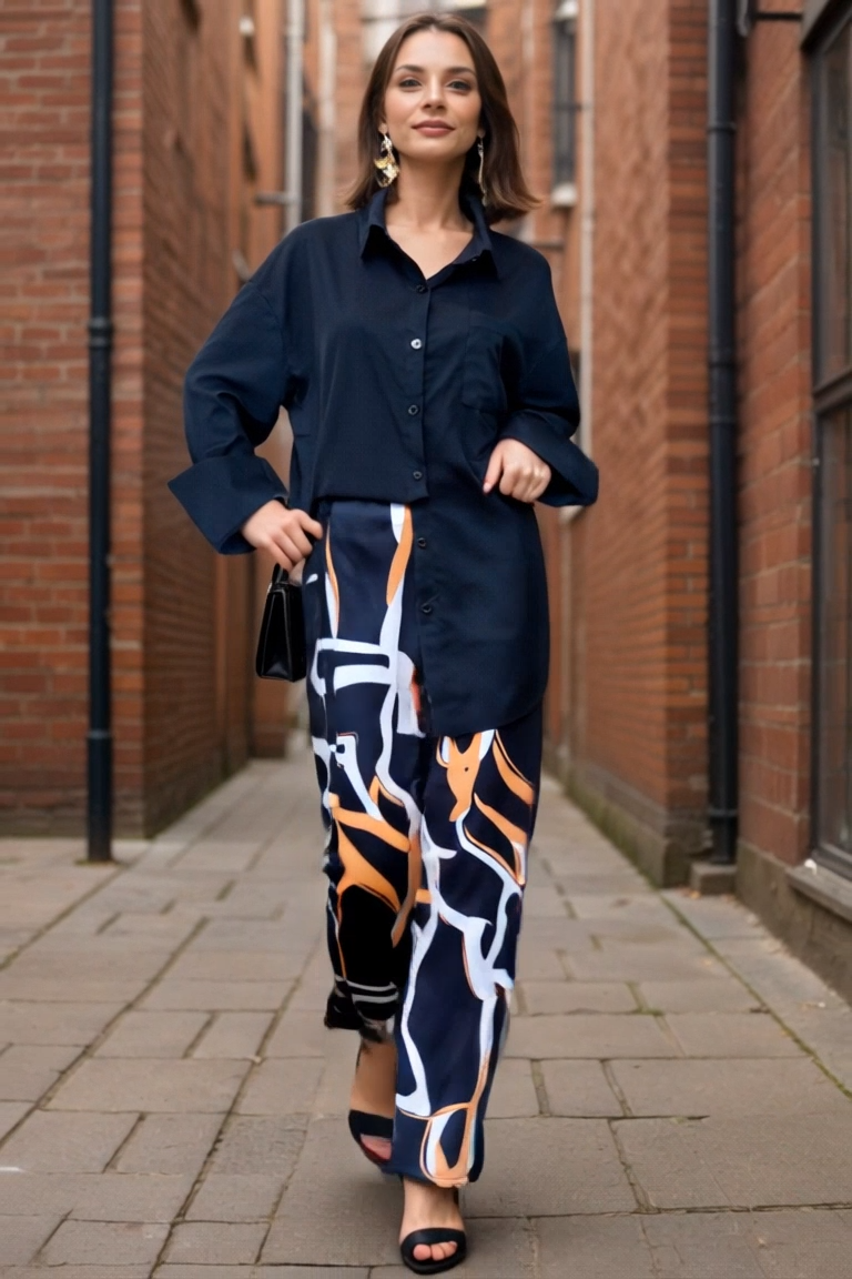 ✔ Elegancka wersja – koszula wpuszczona w spodnie, wysokie obcasy, minimalistyczna biżuteria.