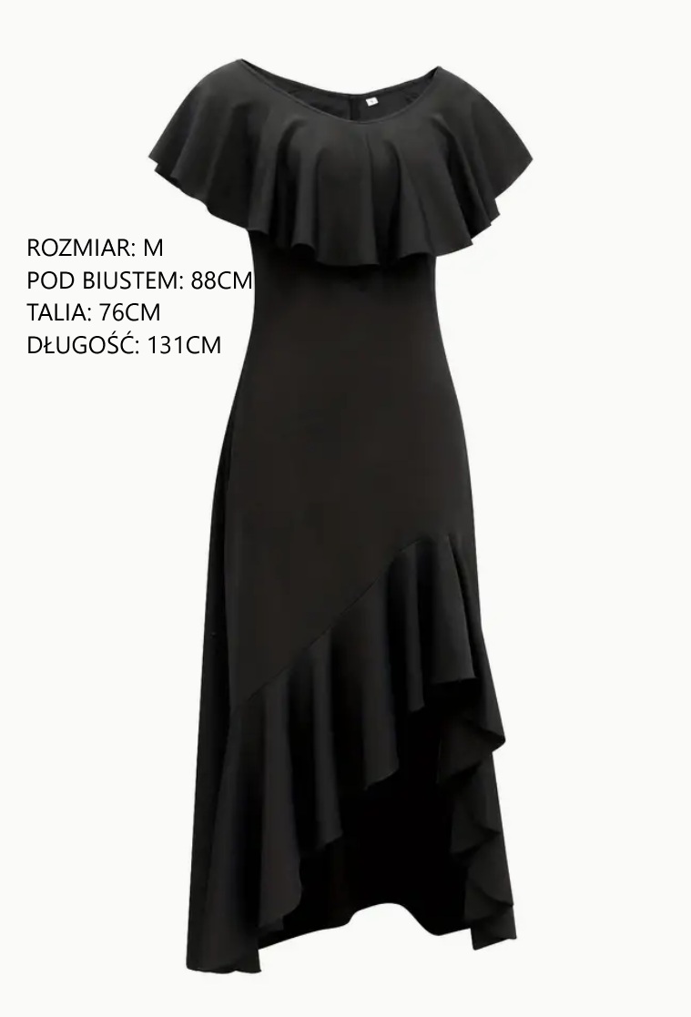 sukienka wieczorowa czarna-sukienka falbany-sukienka hiszpanka-sukienka asymetryczna-sukienka na wesele-sukienka na impreze