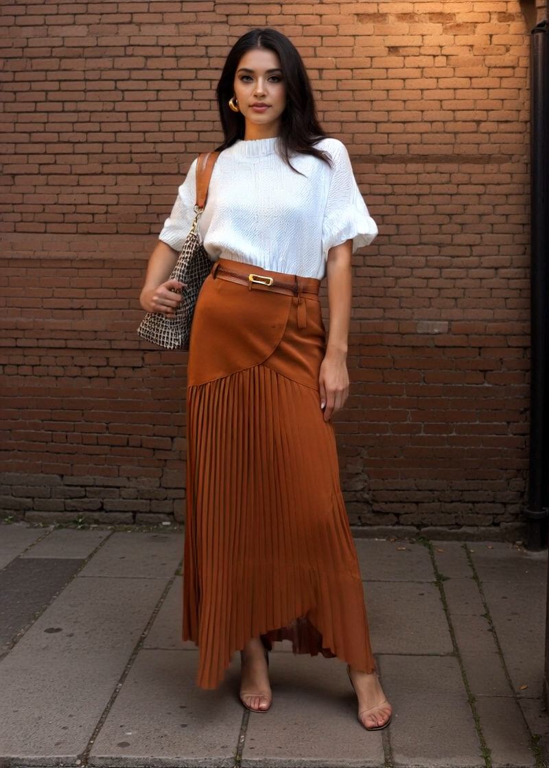Całość jest dobrze zrównoważona, łączy styl klasyczny z nutą nowoczesności, zachowując prostotę, ale jednocześnie oferując ciekawe detale, które podkreślają charakter całej stylizacji. Idealna na codzienne wyjścia, do pracy czy spotkania z przyjaciółmi.