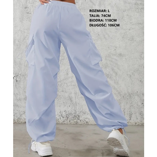 Spodnie bojówki – w kolorze harmonizującym z niebieskimi motylami, zapewniają nie tylko wygodę, ale również modny wygląd dzięki luźnemu krojowi. Ściągacze przy kostkach podkreślają sylwetkę i dodają całości sportowego stylu.
